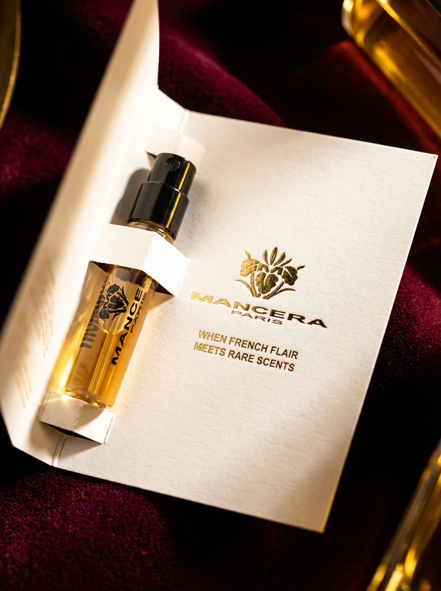 A quick gloss over the sample card reassured me that Mancera meant business. The Art Deco design and gold motif promised good things, and I was sure I could already pick up on a hint of sweet-something.