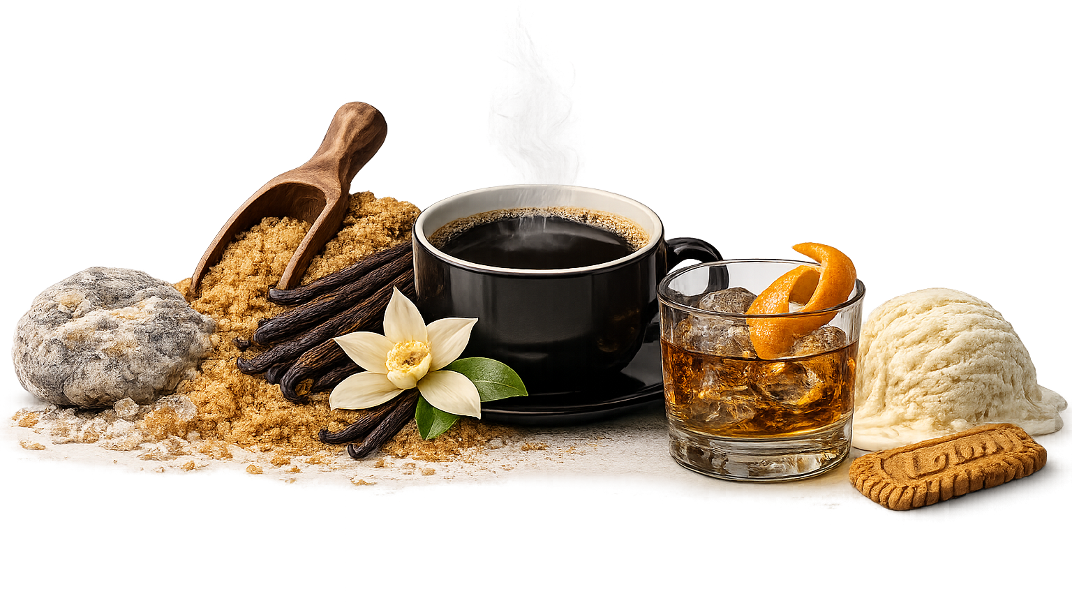 Once the liquid top notes had mingled and married, they were then rounded out by more solid, edible heart notes: ice cream and speculoos. This subtle shift moved the fragrance from drink to dessert – first the coffee and liqueur, then the ice cream and biscuits.